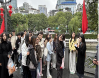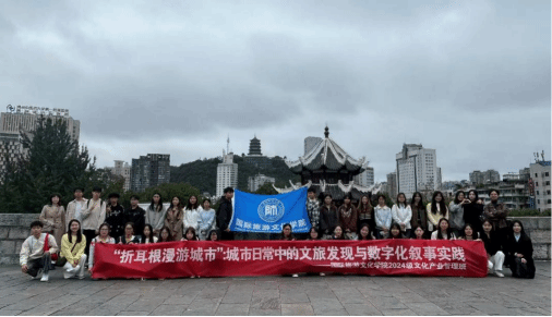2025年10月20日,国际旅游文化学院2024级文化产业管理班的同学们在谢琦、安芮和吴洁三位老师的带领下,以“品牌营运与企业策划”课程为核心依托,将课堂理论与城市实地深度融合,开展了以“折耳根漫游城市”:城市日常中的文旅发现与数字化叙事实践为主题的社会实践活动。同学们通过一场沉浸式City Walk,探访了省府路、电台街、文昌阁、甲秀楼等十余处文化地标。他们在行走中亲身体验城市文旅的多元魅力,完成了理论结合实践的深度认知,从而更深刻地理解了贵阳的政治、文化与经济格局。