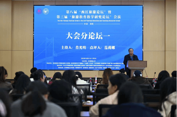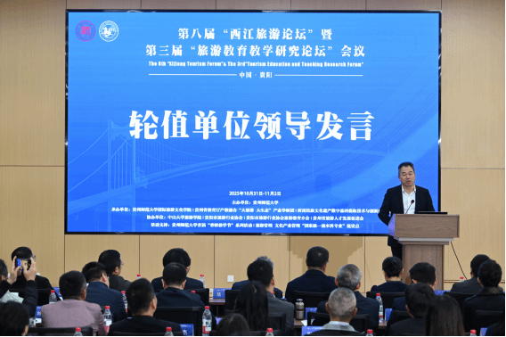 为深入学习贯彻习近平总书记对旅游工作的重要指示精神,2025年11月1日,由贵州师范大学主办,贵州师范大学国际旅游文化学院、贵州省教育厅产教融合“大旅游、大生态”产业导师团、西南民族文化遗产数字基因提取技术与创新应用实验室承办,中山大学旅游学院、贵阳市旅游行业协会、贵阳市旅游行业协会旅游教育分会、贵州省旅游人才发展促进会协办的第八届“西江旅游论坛”暨第三届“旅游教育教学研究论坛”在我校花溪校区东校区举行。本次论坛以“新时代 新需求 新教育:旅游新动能与现代旅游产业体系”为主题,来自省内外高校的旅游专家学者代表100余人参加本次活动。