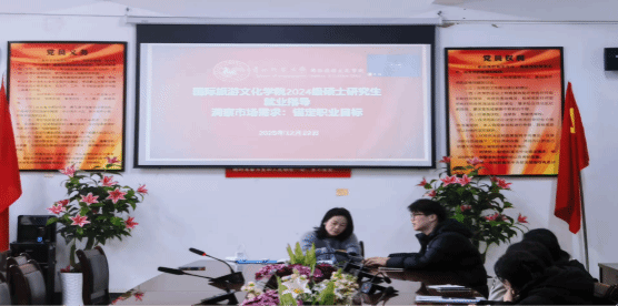 为帮助国际旅游文化学院研究生明确就业方向、提升就业竞争力,2025年12月22日国际旅游文化学院召开“洞察市场需求,锚定职业坐标”研究生实习就业经验分享会。本次会议采用“线下+线上”结合形式,全体研究生参与,会议由研究生辅导员龙婧老师主持。