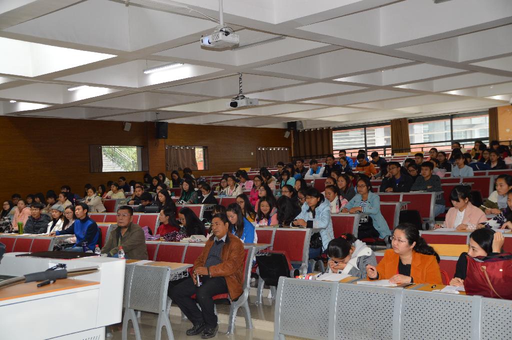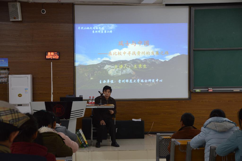 12月1日,我院200余名学生参加了由我校瑞士研究中心主办的“寻找山地文明的价值”系列讲座第二讲在花溪校区GJ6202教室开讲。此次讲座邀请了贵州省政协原副主席王录生担任主讲人,为广大师生带来了题为“瑞士与中国——在比较中寻找贵州的发展之路”的学术报告。副校长徐晓光主持讲座。