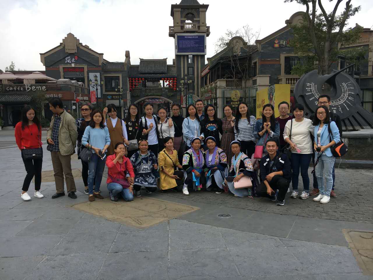2016年10月24日上午9:00由贵州师范大学国际旅游文化学院承办的“贵州省非物质文化遗产传承人群培训蜡染班”的学员一行到“时光贵州”和“五彩黔艺博物馆”考察。上午在时光贵州参观了贵州师范大学国际旅游文化学院教学实习基地贵州乡村旅游发展中心、时光石城及其时光贵州二期工程内有特色的旅游商品饰品店,学员们认真的参观和学习,认真的听从讲解员的讲解。